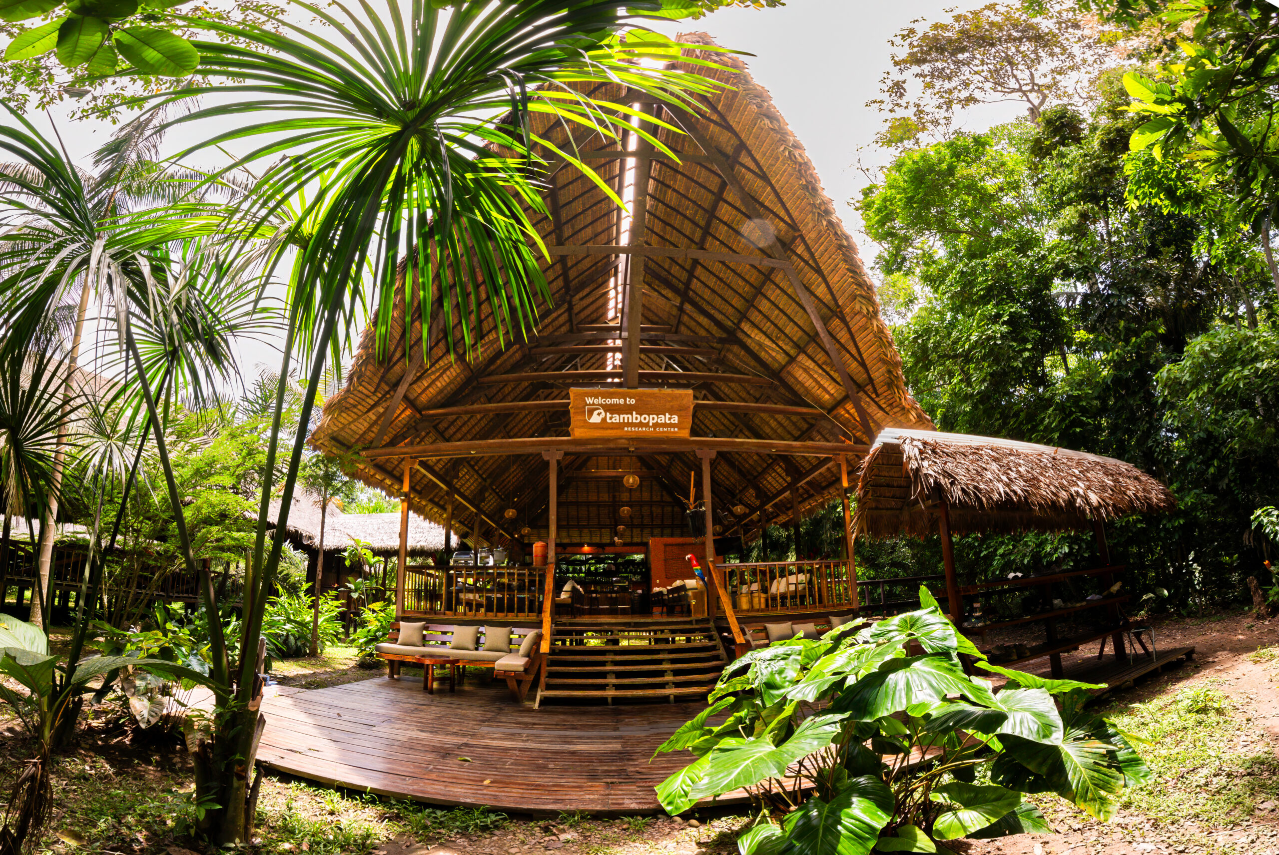The Tambopata Research Center is located within the Tambopata National Reserve in front of the Bahuaja Sonene National Park in Madre de Dios PERU, making it one of the most remote lodges in South America! The lodge's pristine location means that it's surrounded by the best wildlife the Peruvian Amazon jungle has to offer and you will be able to discover it throughout our unique explorations.